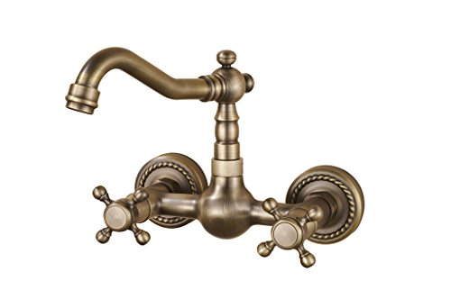 Antique Inspired Brass Kitchen Faucet (Antique Brass Finish)In-wall Mounted, Two Hole, Two HandlesAntique Brass Finish, Brass MaterialComes with all necessary accessories for installationFeatured with durable ceramic valves ensuring there are no water leaks.
