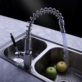 Function: Kitchen Faucet Feature: LED, Centerset, Pull out Style: Contemporary Finish: Chrome Number of Handles: Single Handle Installation Holes: One Hole Faucet Total Height (cm): 37 Spout Height (cm): 25.5 Spout Length (cm): 20 Pull out Length (cm): 120 Valve Type: Ceramic Valve Faucet Body Material: Brass Faucet Spout Material: A Grade ABS Faucet Handle Material: Zinc Alloy Net Weight (kg): 1.9 Shipping Weight (kg): 2.2 Read more details..
