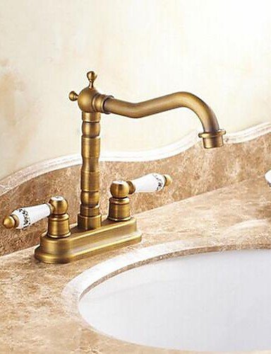 Installation Type:CentersetInstallation Holes:Two HolesNumber of Handles:Two HandlesFinish:Antique BrassStyle:TraditionalFlow Rate:2 GPM (7.57 L/min)Valve Type:Ceramic ValveCold and Hot Switch:YesOverall Height:205 mm (8.07")Spout Height:150 mm (5.91")Spout Length:235 mm (9.25")Faucet center:3 to 6 InchesFaucet Body Material:BrassFaucet Spout Material:BrassFaucet Handle Material:CeramicValve included:YesDrain included:NoNet Weight (kg):1.5Shipping Weight (kg):1.8 Read more details..